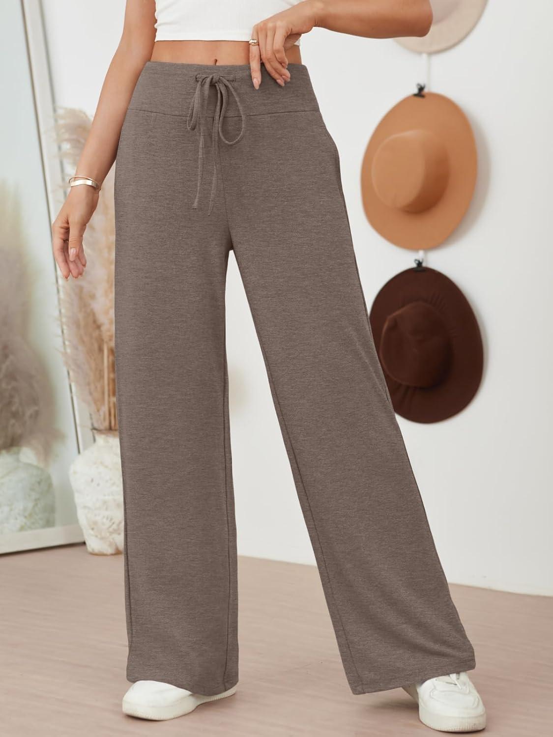AUTOMET Womes Wide Leg Sweatpants Pajama Pants Baggy Casual Lounge Yoga Pants High Waisted Bottoms Fall Clothes Trendy 2025(Coffeegrey)