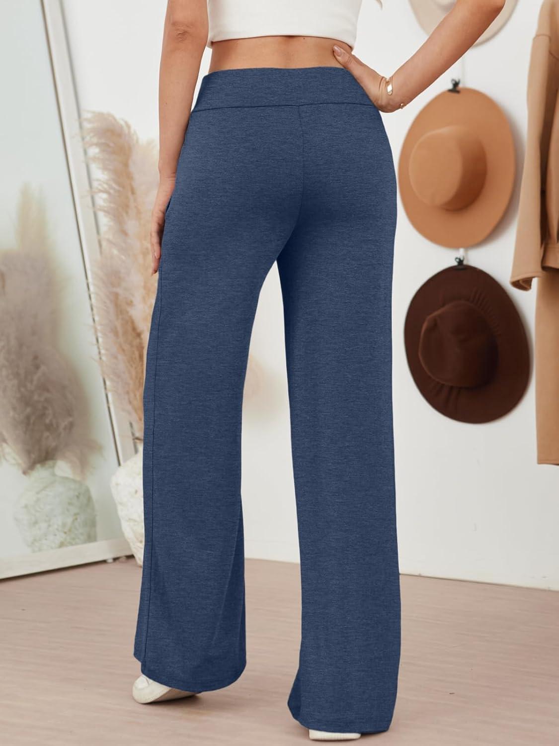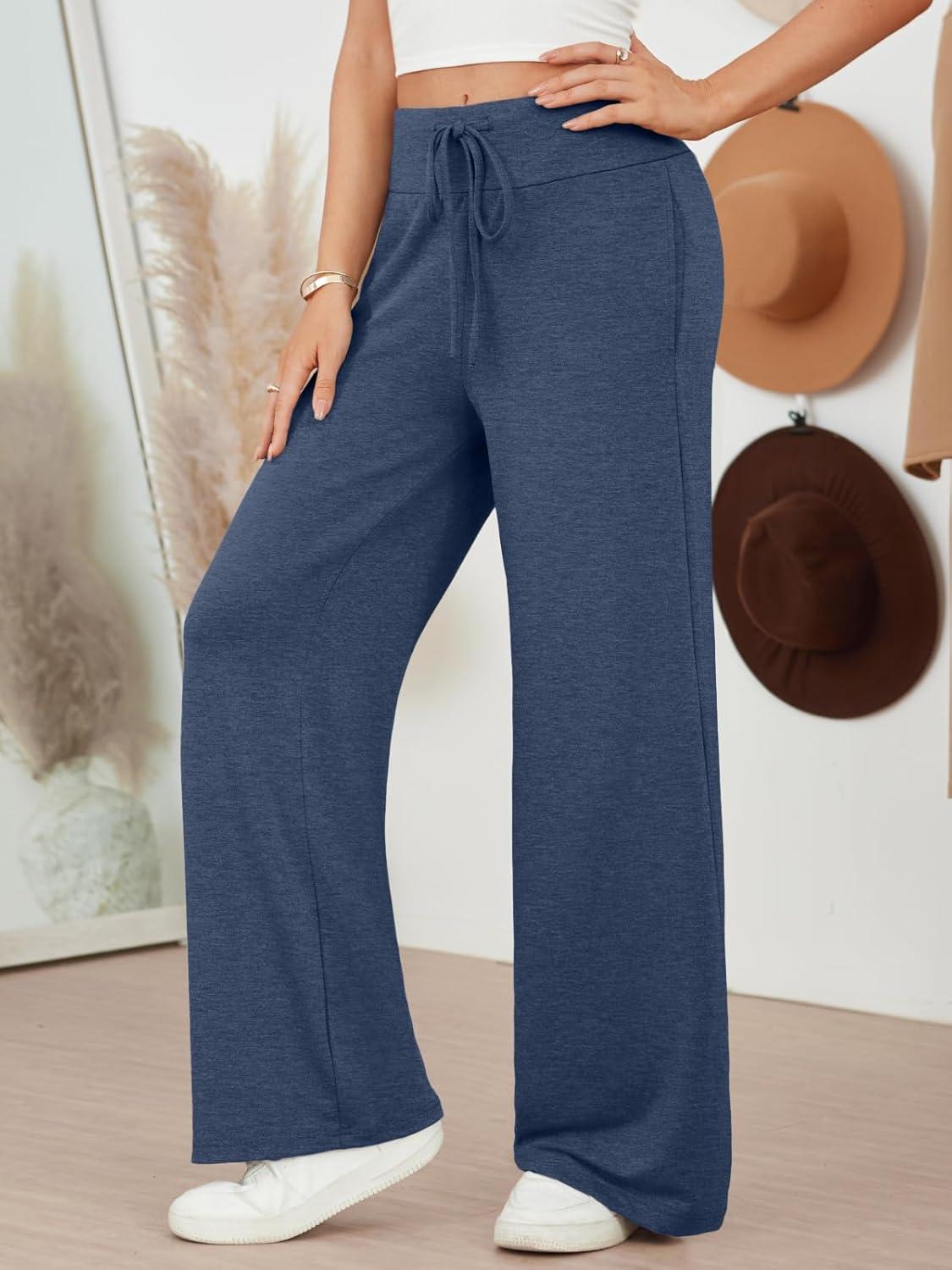 AUTOMET Womes Wide Leg Sweatpants Pajama Pants Baggy Casual Lounge Yoga Pants High Waisted Bottoms Fall Clothes Trendy 2025(Navy)